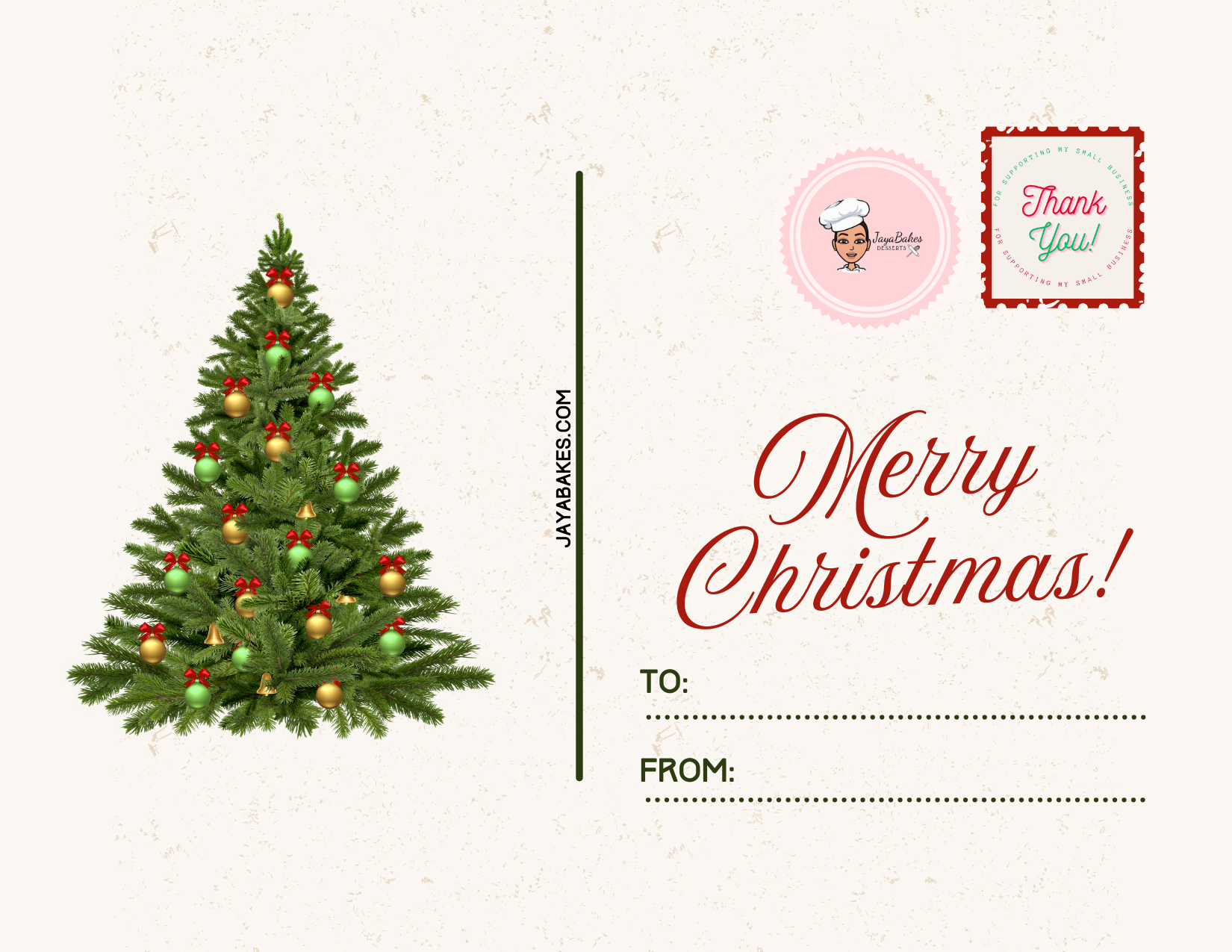 Add a personalized Christmas card to your cookie order! Spread holiday cheer with a beautiful greeting card that perfectly complements your delicious treats.